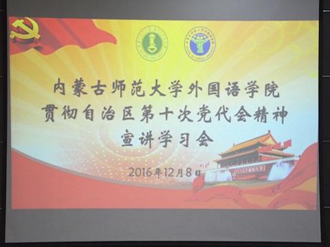 为深入学习贯彻自治区第十次党代会精神,深刻领会自治区党委书记李纪恒同志在第十次党代会上的报告内容,按照校党委的学习部署和傅永春书记在党委中心组扩大学习会上对第十次党代会精神宣讲的要求,pp电子游戏平台网站党总支积极响应,认真学习,并组织学院全体教职工及全院学生代表300余人,于2016年12月8日下午在盛乐校区图书馆一楼报告厅举办了“pp电子游戏平台网站贯彻自治区第十次党代会精神宣讲学习会”。宣讲学习会有幸邀请到内蒙古自治区党委政研室副主任刘文纪同志担任主讲人,pp电子游戏平台网站党总支副书记(主持工作)拓俊杰老师主持了宣讲会。