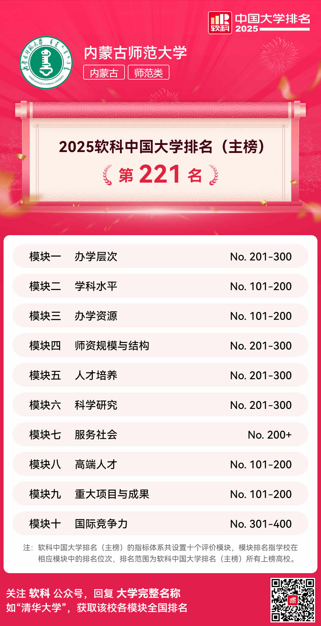 本网讯 4月15日,高等教育专业评价机构软科正式发布“2025软科中国大学排名”,pp电子游戏官网综合排名居于全国第221位,较上年提升17位,较2019年提升248位,呈现连续上升趋势,展现出良好的发展态势。