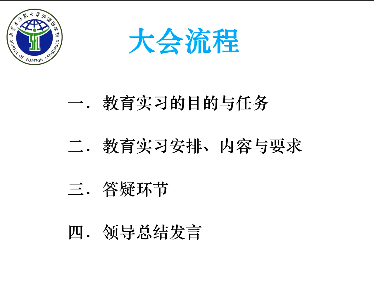 那日苏副院长在发言强调了实习纪律,也表达了对实习生们的殷切期待。她指出,实习生实习期间须以一名成年人的身份严以律己,同时也须以一名实习生的身份完成实习任务,悉心听取指导教师的建议和意见;希望实习生们认真学习教育部最新发布的教师行为规范文件,注意教师话语的得体性,多听多看、少说多做,严格遵守实习学校和pp电子游戏平台网站、pp电子游戏官网的各项规章制度。