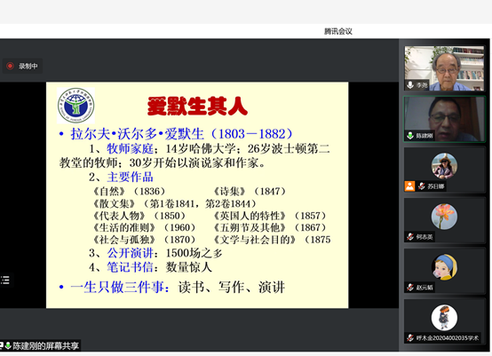 6月1日晚上,pp电子游戏平台网站英语系举办中青年教师学术工作坊系列讲座“译路心语——《爱默生传》翻译分享”线上座谈会。英语系翻译课程群教师团队、部分本科生和研究生齐聚线上,共同分享和探讨文学翻译的经验和方法,座谈会由英语系系主任苏日娜主持。