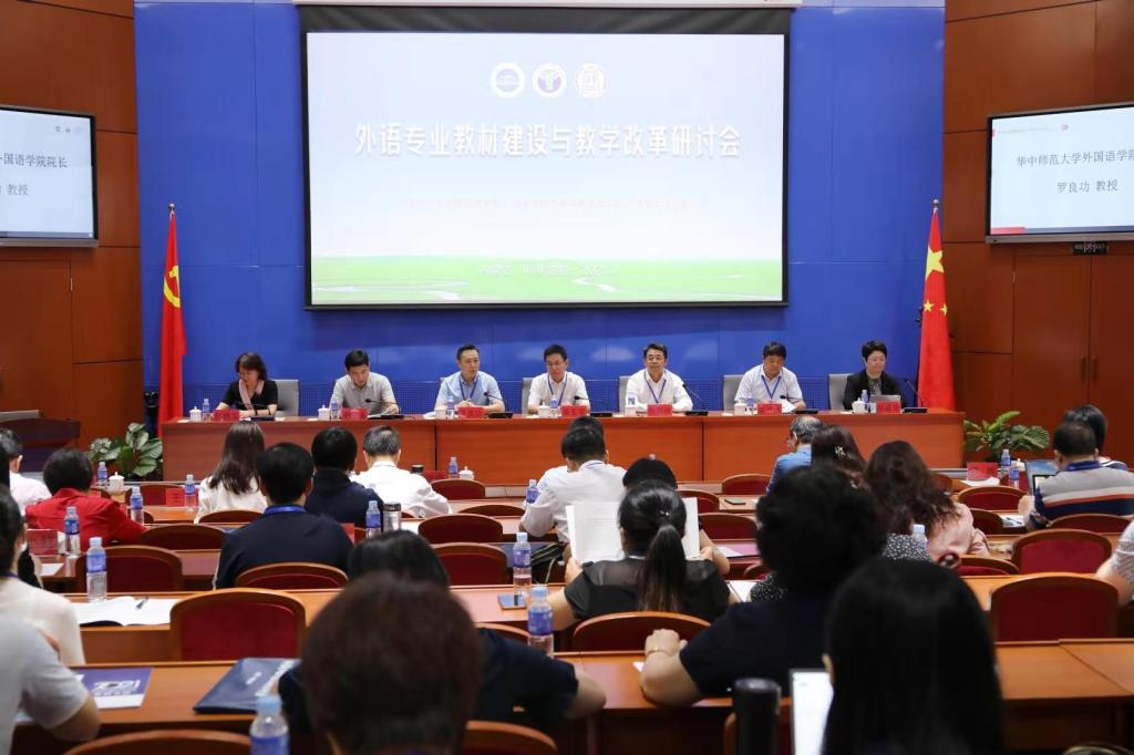 为加强全国外语专业教师学术交流,进一步落实外语专业建设目标和人才培养过程与方法的改革目标,由华中师范大学pp电子游戏平台网站、pp电子游戏平台网站pp电子游戏平台网站和清华大学出版社联合主办,pp电子游戏平台网站pp电子游戏平台网站承办的2021年全国“外语专业教材建设与教学改革研讨会”于 7月19--21日在pp电子游戏官网隆重举行。西安外国语大学副校长姜亚军教授、华中师范大学pp电子游戏平台网站院长罗良功教授、北京师范大学外文学院院长苗兴伟教授、战略支援部队信息工程大学洛阳校区科研处处长陈春华教授、广西师范大学pp电子游戏平台网站院长谢世坚教授、南开大学pp电子游戏平台网站张文忠教授、四川大学pp电子游戏平台网站副院长王欣教授、清华大学出版社外语分社郝建华社长等专家,以及其他60余所高校的pp电子游戏平台网站负责人、专家学者共一百余人参加了研讨会。pp电子游戏官网党委委员、副校长张海峰教授和教务处处长韩巍教授出席了开幕式。开幕式由pp电子游戏官网pp电子游戏平台网站党委书记李文胜主持。