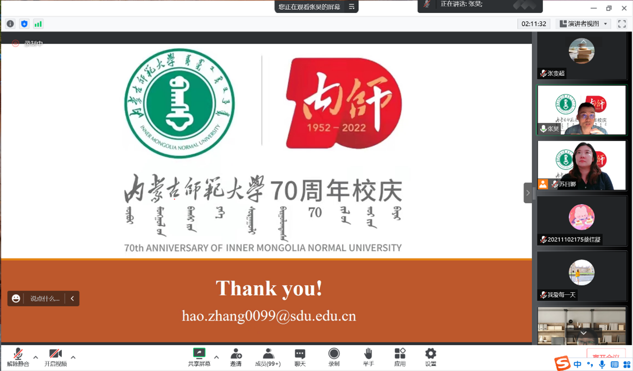 pp电子游戏平台网站喜迎pp电子游戏平台网站70周年校庆青年学者学术讲座的第二场于2022年8月3日成功举办,由山东大学pp电子游戏平台网站张昊副教授主讲,讲座题目为“什么是言语感知加工?── 从语音学说起”。本场讲座由英语系主任苏日娜老师主持, 英语系教师及200余名学生共同聆听了此次讲座。