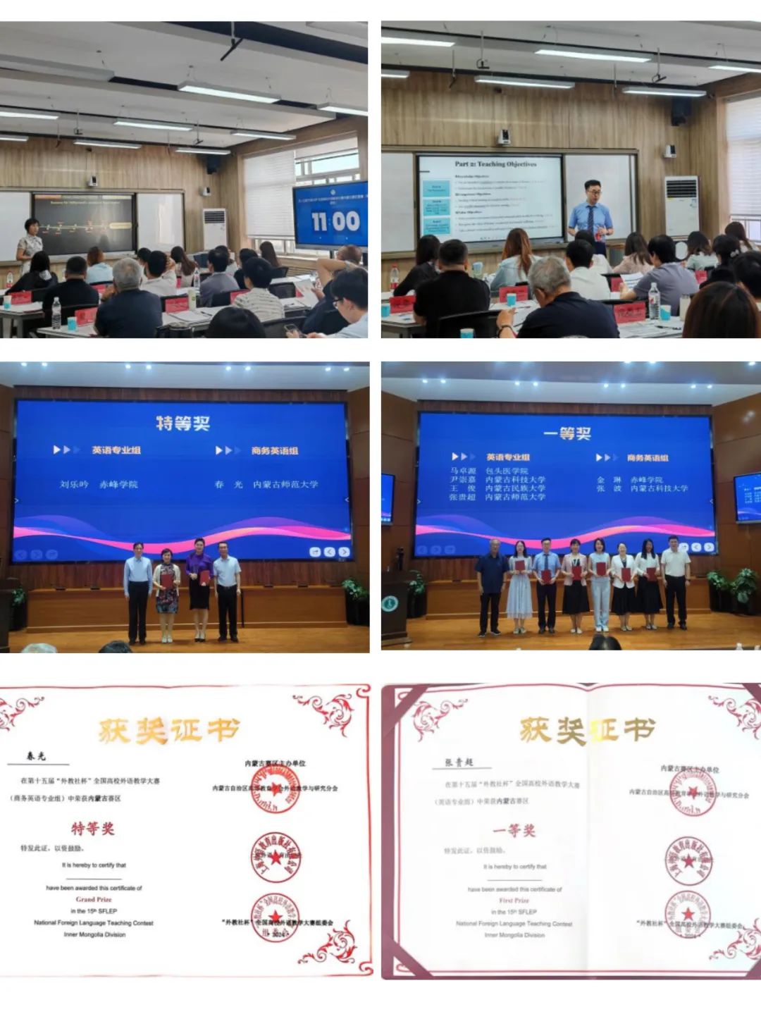 2024年6月29日至30日,第十五届“外教社杯”全国高校外语教学大赛内蒙古赛区复赛和决赛在pp电子游戏官网赛罕校区举行。pp电子游戏平台网站英语系专任教师春光和张贵超两位老师经过两天的激烈角逐分别获得了商务英语组特等奖和英语专业组一等奖的好成绩。