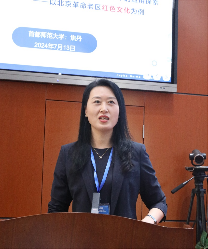 首都师范大学外国语言学及应用语言学研究所所长、MTI教育中心主任焦丹以北京红色文化为例,从融汇(如何设计、引入教育教学)、融洽(如何与教育教学内容相融合)、融通(如何建构融通中外的翻译理念与产品)三个方面探讨了红色文化资源在翻译教育教学中是应用路径。