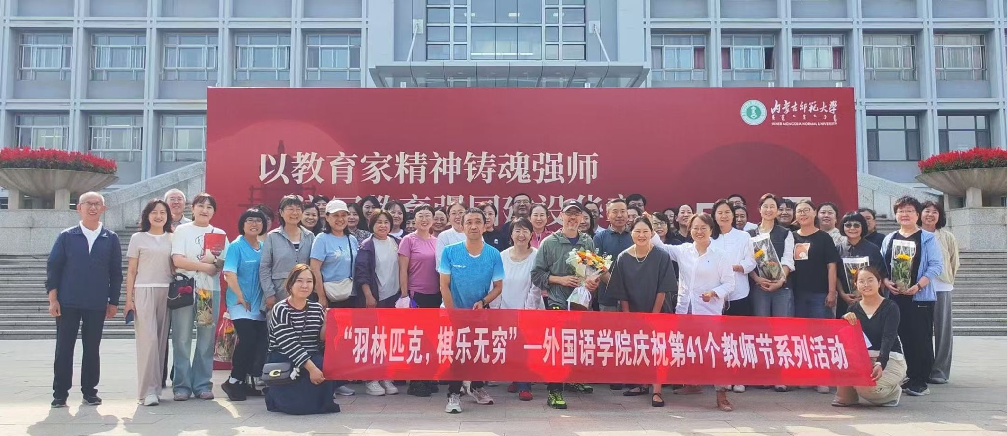 9月10日,清晨的行知楼洋溢着温馨的氛围。学院领导班子早早守候在门口,为每一位辛勤的教师献上精心准备的鲜花与节日的祝福。真诚问候不绝于耳,朵朵鲜花映衬着老师们喜悦的笑容,现场温暖动人。