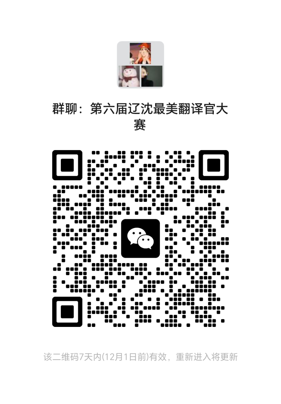 参赛个人请于2023年11月28日24:00前扫码进群,进群务必改备注:语种+学院+姓名+手机号。