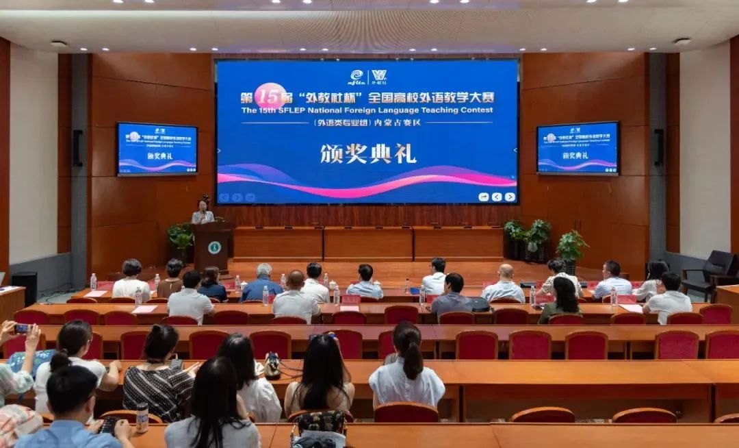 本次比赛的颁奖典礼于6月30日上午在赛罕校区信息楼报告厅举行。pp电子游戏官网党委委员、副校长韩巍,西安外国语大学党委委员、副校长党争胜,上海外语教育出版社副社长严凯分别致辞。内蒙古自治区高等教育学会外语教育研究分会会长马占祥及区内兄弟院校相关负责同志、大赛评委专家、参赛选手等出席典礼。