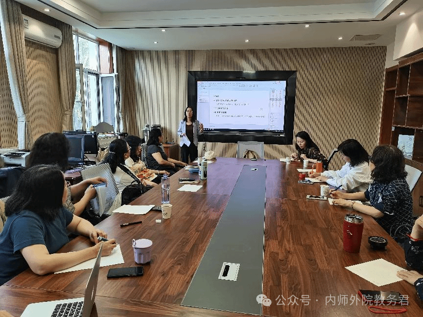 随后,英语系的洪颖老师从教学大纲撰写、期末试卷表格规范化撰写、达成度计算报告等方面为大家进行了详细的讲解,这对于即将到来的师范认证工作具有重要意义。洪老师的讲解深入浅出,不仅为教师们提供了撰写报告的实用技巧,也为大家指明了如何通过报告反映教学成果的方向。