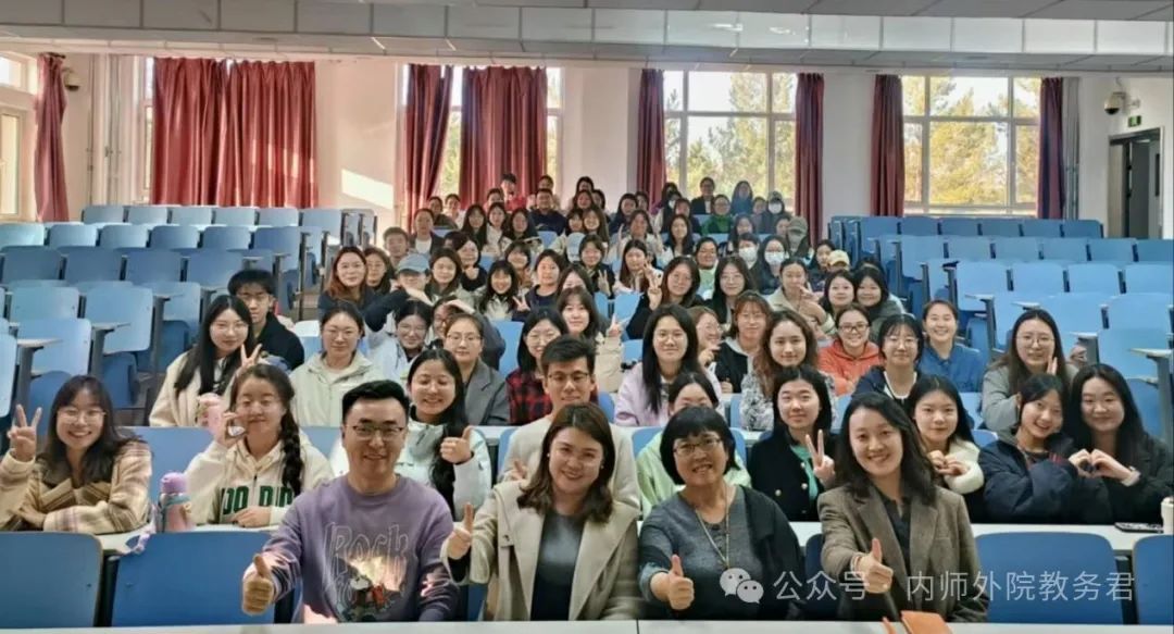 首先,阿力更老师介绍了2024年英语专业教育实习的基本情况。本年度的教育实习共有2021级英语专业的136位同学参加,实习周期为8周,校内指导教师34人,校外指导教师156人,实习基地校分布于区内11个盟市和北京市。实习期间,我系苏日娜、阿力更、那日苏、乌兰、吴晓春等教师走访了pp电子游戏平台网站附属中学、呼和浩特市第十七中学、呼和浩特市第三十中学等实习基地校,全方面、多维度地了解了实习生的实际表现。在本年度的教育实习中,实习生们表现优异,2021级英语2班的曹子璇、孙延妮和3班的白蕊同学获批pp电子游戏官网“第四批师范生全学期教育实习专题项目”,那木拉、常馨予、史慧超、徐晓博、曹子璇、杨钧荐等同学获得了实习基地校颁发的“优秀实习生”荣誉证书及表扬信。实习生们顺利地完成了本次实习任务,教学能力、班级管理能力和教学研究能力等得到显著提升。