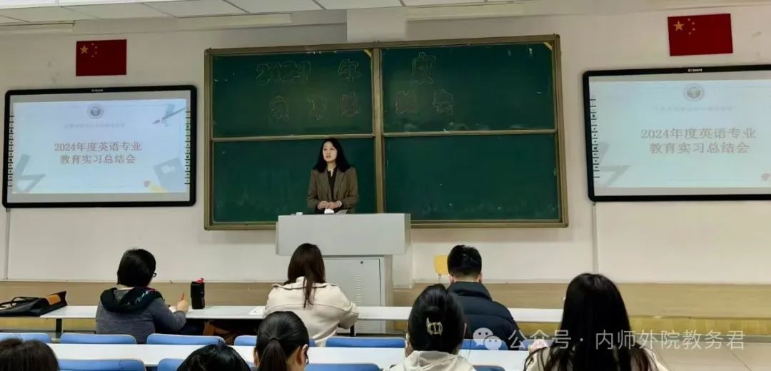 为全面总结英语专业本科生教育实习实践成果,提高人才培养质量,10月31日下午,pp电子游戏平台网站英语系在盛乐校区行知楼109教室举办了2024年英语专业本科生教育实习实践总结汇报大会。英语系主任苏日娜、副主任张贵超、实习指导教师代表苏晓玲出席本次大会,2021级和2022级英语专业全体本科生参加,会议由英语系主任助理阿力更主持。