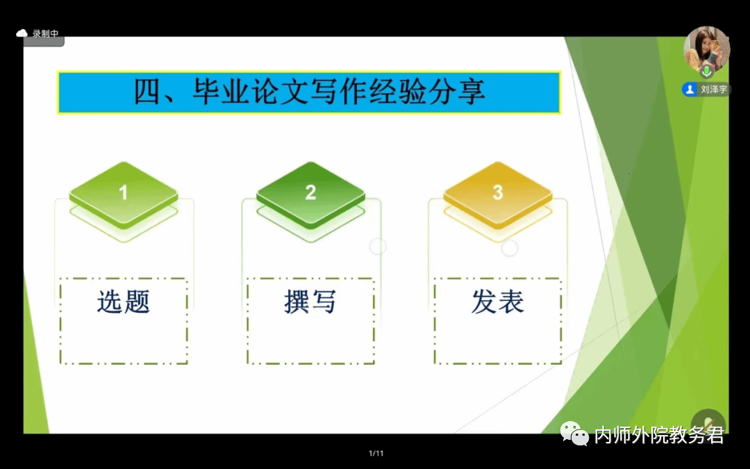 首先,吴白音那老师阐述了毕业论文的重要性,强调毕业论文是实现培养目标的重要教学环节,在培养大学生的探求真理、强化社会意识进行科学研究基本训练、提高综合实践能力与素质等方面具有不可代替的作用。接着,吴白音那老师梳理了毕业论文的写作过程。