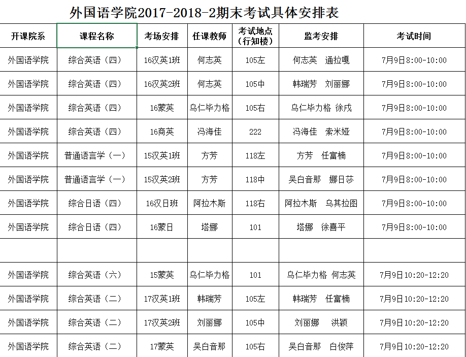 pp电子游戏平台网站2017-2018-2期末考试具体安排表