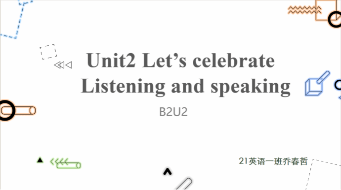 2021级英语1班的乔春哲以外研社(必修二)Unit2 Let’s celebrate为内容,围绕节日这一话题锻炼学生的听说能力。乔春哲同学的教学设计巧妙,不仅制作了精美的教具,还运用多种互动模式提升教学的趣味性,让在场的老师和同学眼前一亮。