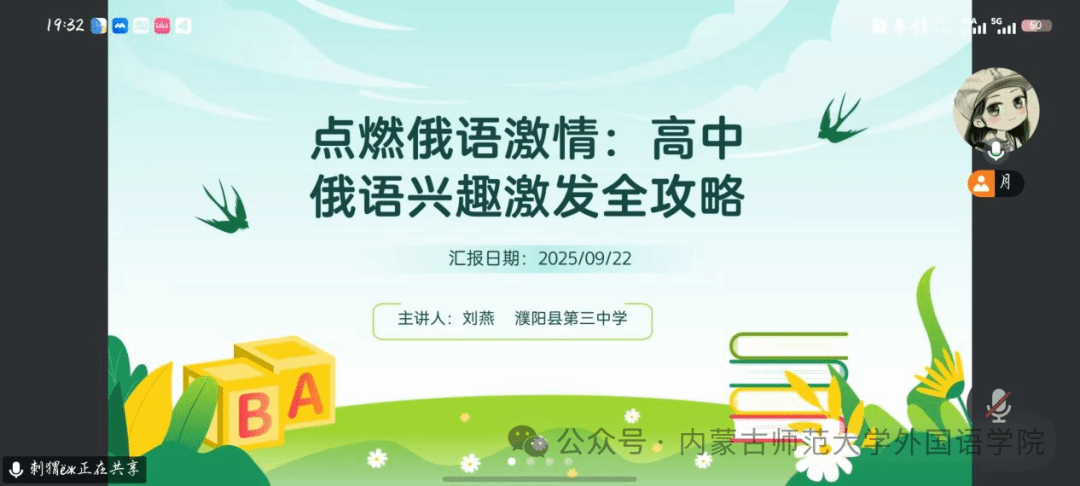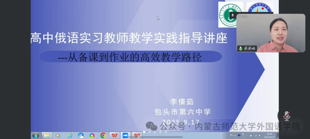 为深化师范生对中学俄语教学实践的理解,提升未来教师核心能力,pp电子游戏平台网站俄语系于2025年9月17日、22日,先后邀请包头市第六中学李倩茹老师、濮阳县第三中学刘燕老师开展专题分享会。