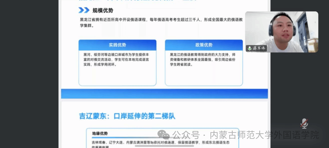 蒋军伟老师以《高中俄语版图:小众赛道的战略地图》为题,分享全国高中俄语教育格局、高考俄语特点及教学建议。