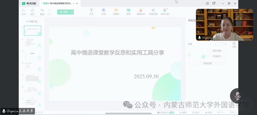 鲁红伟老师以《高中俄语课堂教学反思与实用工具分享》为题,分享教学反思、自制教具及实用教学资源。