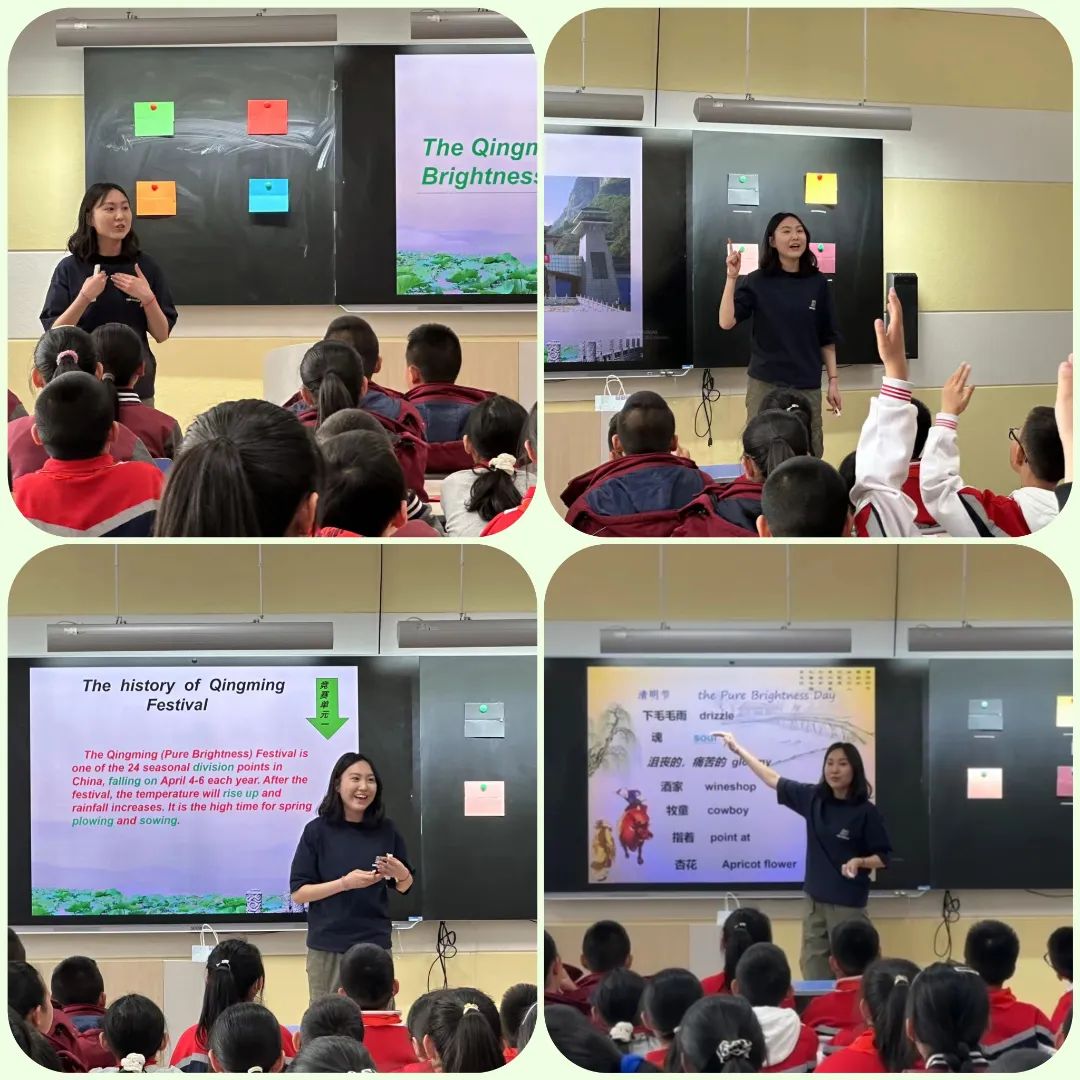 本次活动内容为“英语绘本诵读--用英语讲中国故事”。在英语系党员教师呼和塔拉和张昱的指导下,2023级英语课程与教学论的高晴和刘心如同学进行了课程的设计。诵读的第一环节为展示关于清明的英文介绍,小组翻译 The history of Qingming Festival,接下来了解了关于清明节的文化背景及英雄事迹。小朋友们热情高涨,积极参与,通过英雄事迹故事、录像资料,缅怀先烈,致敬英雄。