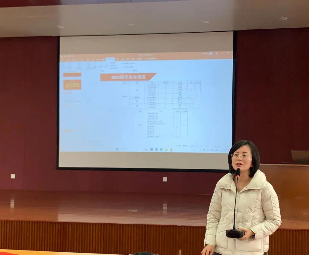 pp电子游戏平台网站副书记、副院长王丹通报了2023届毕业生就业情况以及就业奖励实施办法,感谢所有为学院就业创业工作付出努力和给予帮助的老师们,2023届毕业生的就业业绩是全院教工上下同心共同努力的结果。同时,王丹传达了校党委书记李树林、党委副书记、校长张军在pp电子游戏平台网站2024届毕业生就业工作动员大会的讲话精神,并在认真梳理总结就业工作经验的基础上,安排部署了2024届毕业生就业工作。学院党委始终高度重视毕业生就业创业工作,pp电子游戏平台网站2024届毕业生421人,基数大任务重,全院教职工还要继续协同努力、多方发力,助力2024届毕业生多渠道高质量就业。