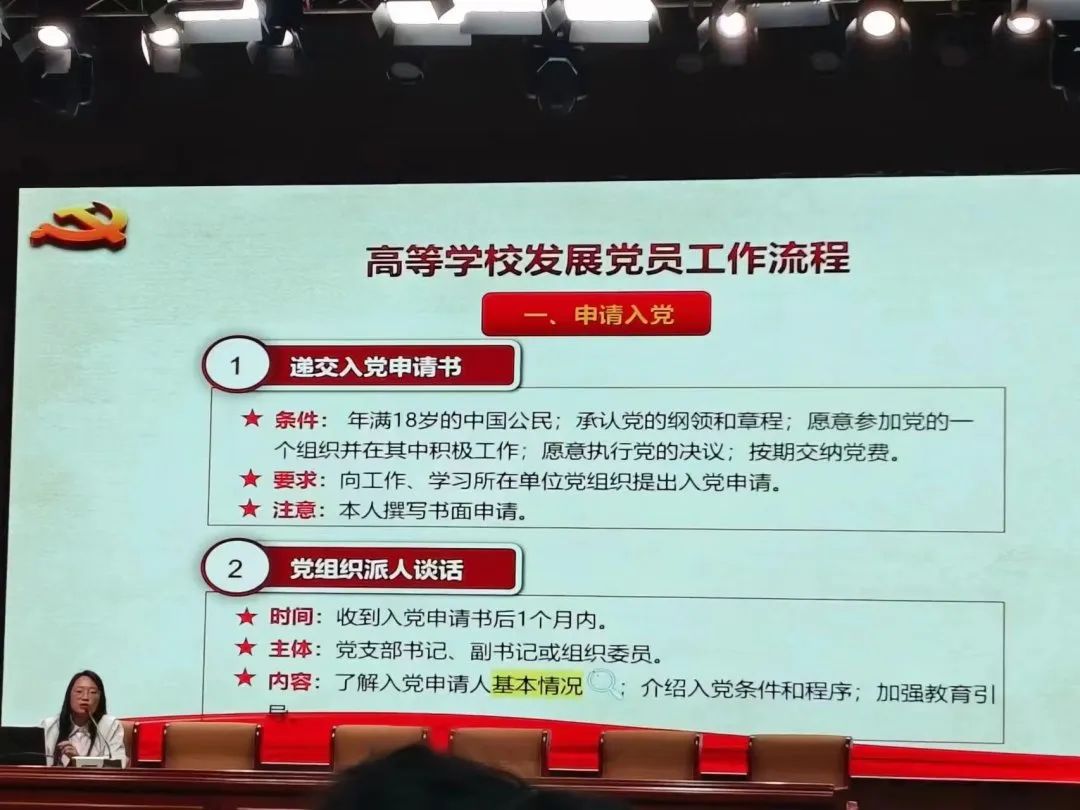 pp电子游戏平台网站辅导员吕志云老师详细介绍了pp电子游戏平台网站党员发展流程,希望同学们坚定理想信念,积极向党组织靠拢