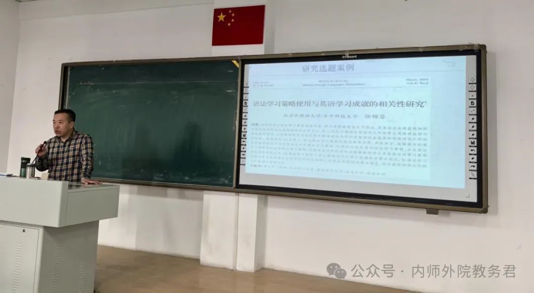 第二场讲座由吴白音那老师主讲,题为“外语教学问卷调查法”。讲座伊始,吴白音那老师通过生动案例引导学生思考问卷调查在教学研究中的重要性。他指出,问卷调查不仅是数据收集工具,更是理解学生需求、改进教学方法的关键途径。随后,吴白音那老师详细介绍了问卷调查的各个环节,包括设计、信效度测试、实施与回收、数据统计与检验,以及研究案例分析。他强调问卷设计的科学合理性和信效度测试的重要性,以确保调查结果的准确性和可靠性。