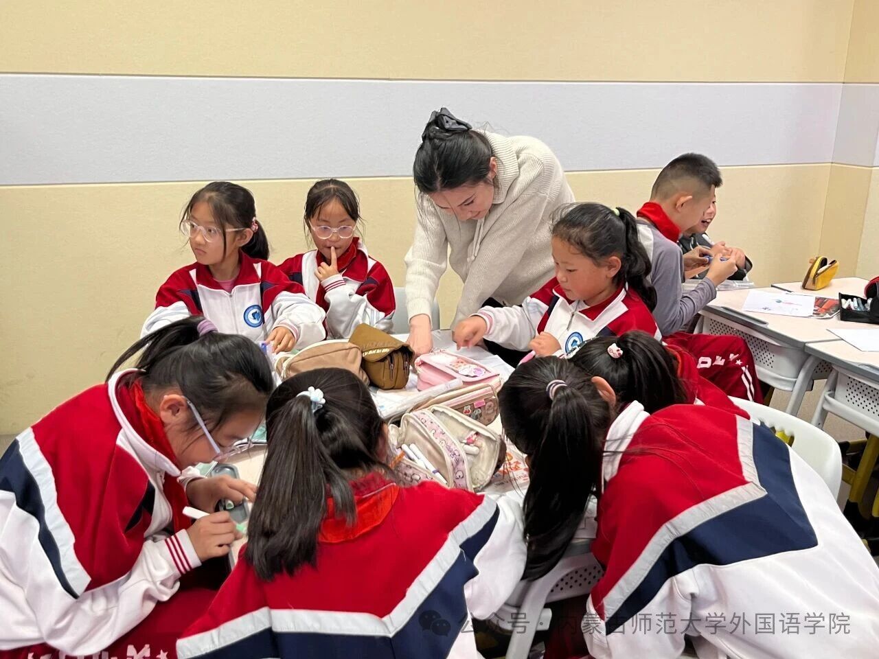 活动依托“高校教师+学生党员+基础教育”三维育人模式,打造“主题式+任务型”课程体系,将社会主义核心价值观融入课堂设计。pp电子游戏平台网站师生通过互动教学、小组协作等形式,助力小学生提升英语学习兴趣与跨文化沟通能力,也为其后续学习规划提供了方向指引。