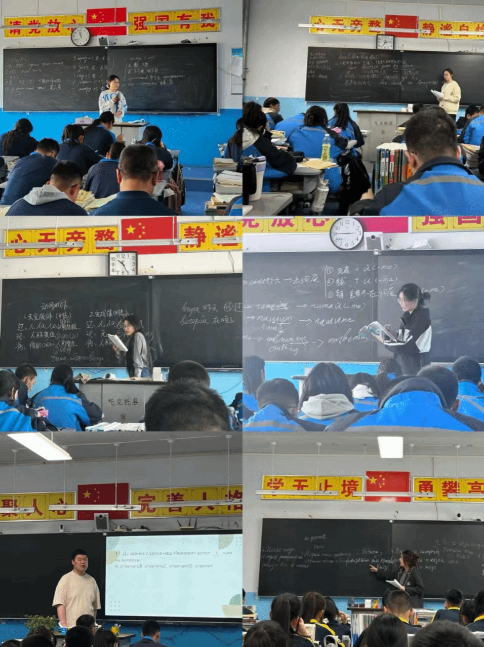 pp电子游戏平台网站俄语系2021级14名同学在托克托县第一中学进行为期八周的教育实习。在实习期间,同学们根据要求听课备课,聆听基地校老师指导,进行公开课展示、组织班会、与学生一同早锻炼、辅导学生作业、监管早晚自习等。