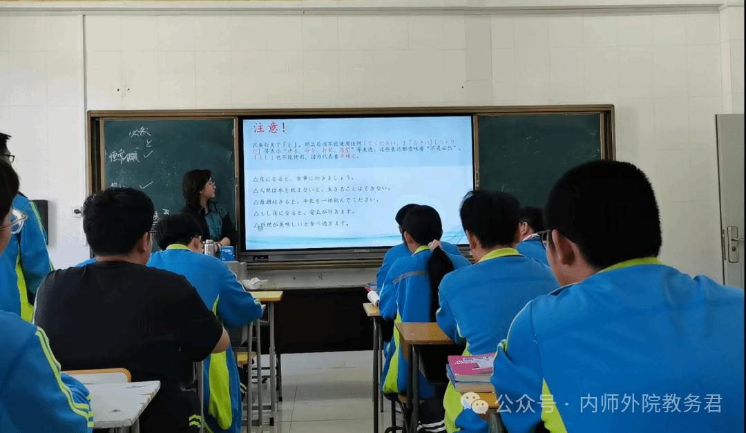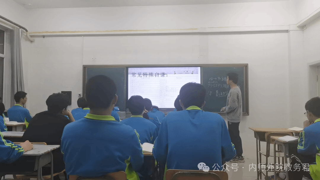 21级日语二班乌仁图雅同学为高一年级组同学们进行授课,讲解初级日语语法。
